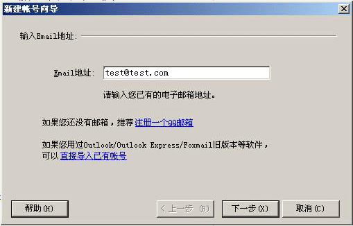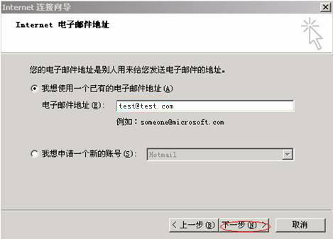 2.点出下一步,输入您申请的电子邮件地址,如图: