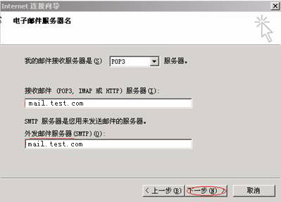 3.点击下一步后,进行电子邮件服务器名设置,如图: