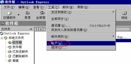 1.选择主菜单——[工具]——[帐户(A)…],如图: