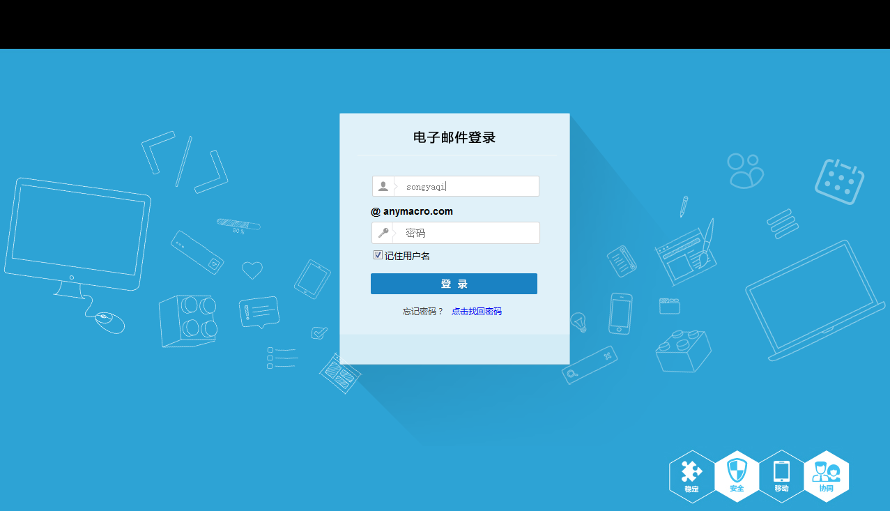 ①登录邮箱时,不用添加@后缀。例如:test@您的域名.com只需输入用户名test即可。
