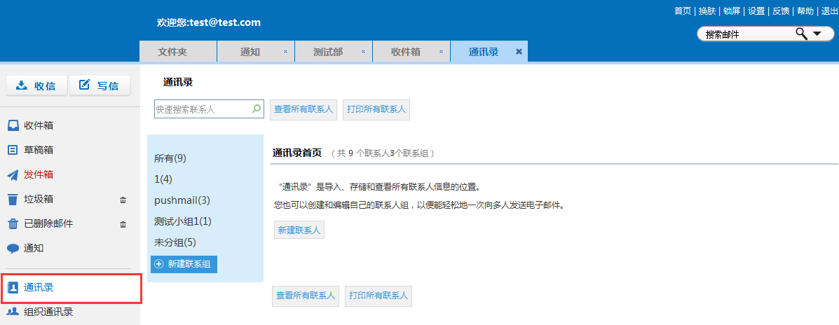 在这里可以清楚的看到邮箱的使用情况,包括邮箱总体容量和已使用容量以及单个文件夹下的邮件总数、未读邮件数、占用空间数等,有利于用户直观统计和合理运用空间。