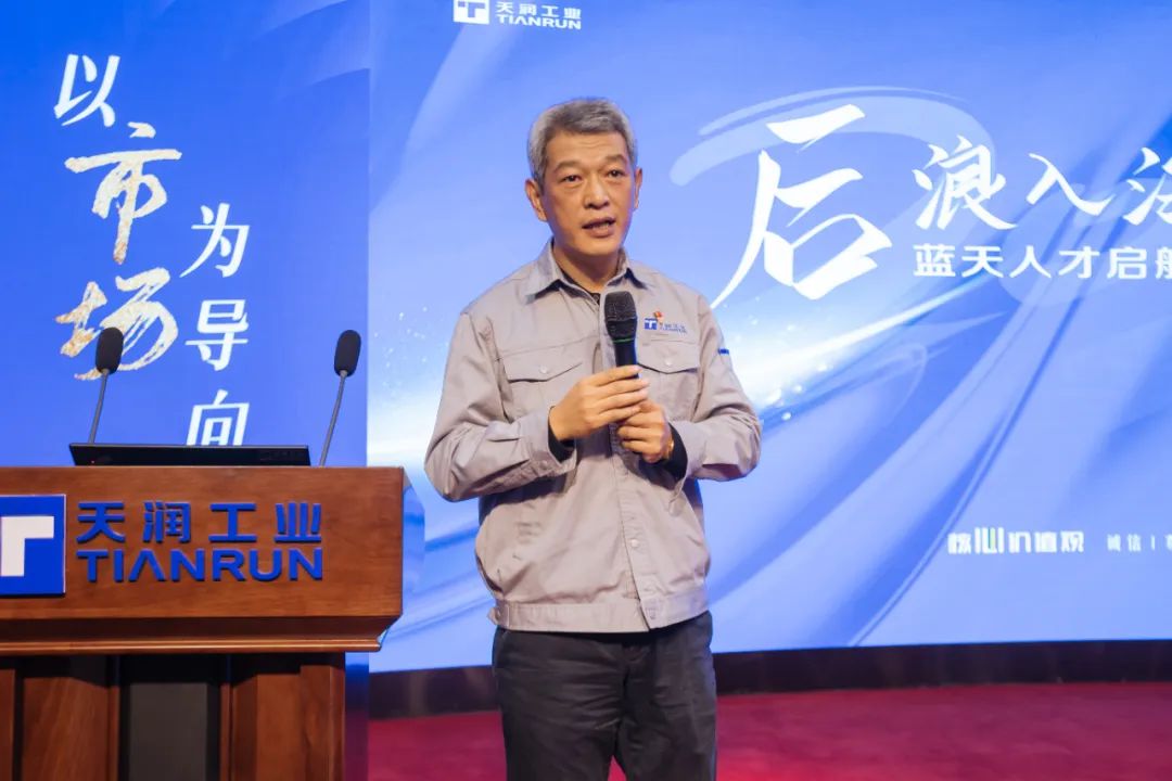 总经理徐承飞在结业典礼上为学员解答对职业发展的疑惑,结合自身职业发展历程分享“自律”对成长、成才的重要作用。在“向下扎根、向阳成长”主题讲话中,他指出,天润是一家制造型企业,基层一线的淬炼是拓宽职业发展通道的必要路径,“新润班”大学生要紧抓天润未来10年的快速转型发展的关键期,扎根基层、蓄积力量,练就过硬本领,担当起天润持续发展的历史重任。
