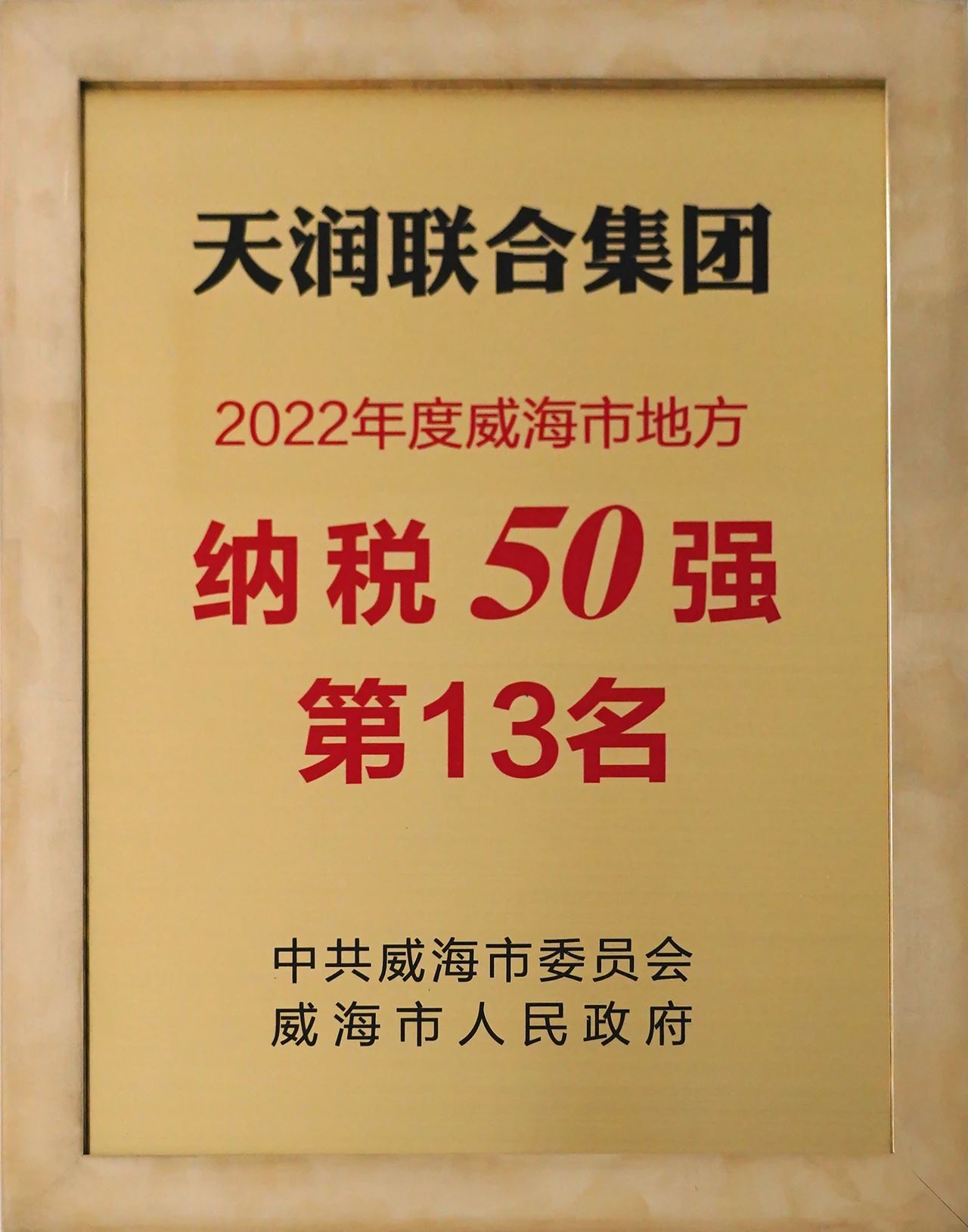 1月28日,威海市2023年工作动员大会召开,1月30日,文登区工业振兴暨优化营商环境大会召开,天润联合集团有限公司、天润工业技术股份有限公司分别荣获威海市地方纳税50强第13名和文登区纳税功勋单位第1名。
