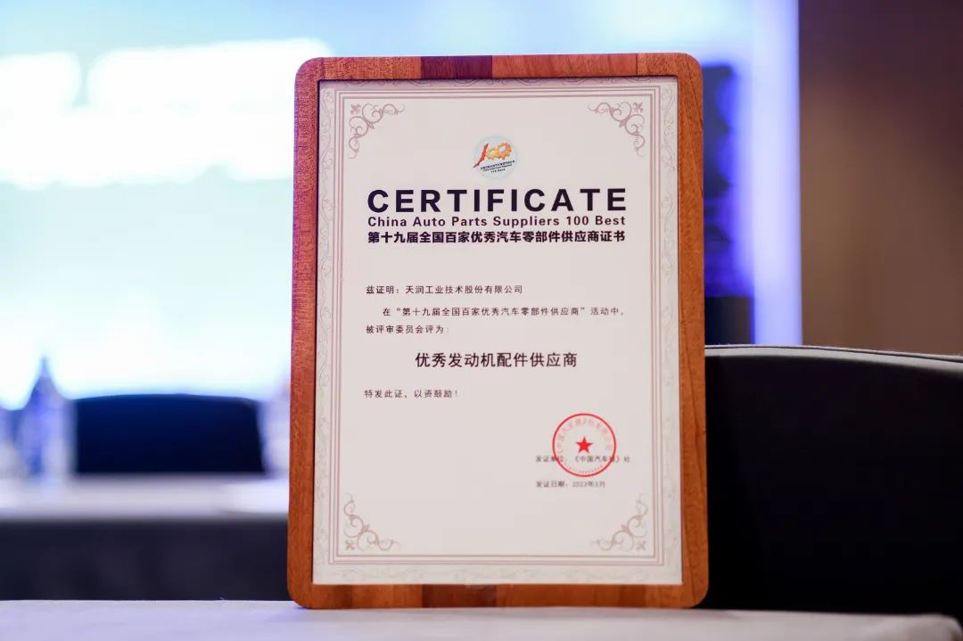 | 天润工业技术股份有限公司再获“全国百家优秀汽车零部件供应商”-天润要闻-天润工业技术股份有限公司